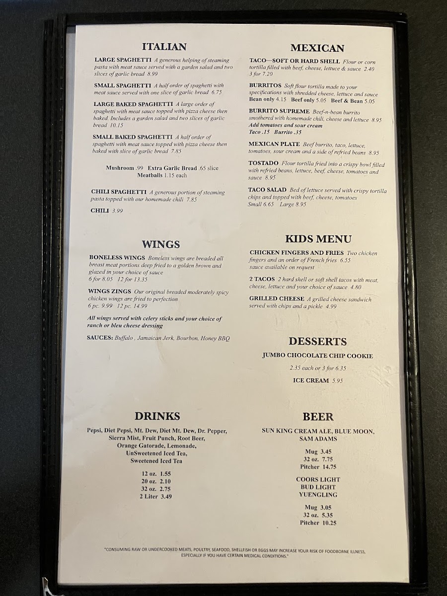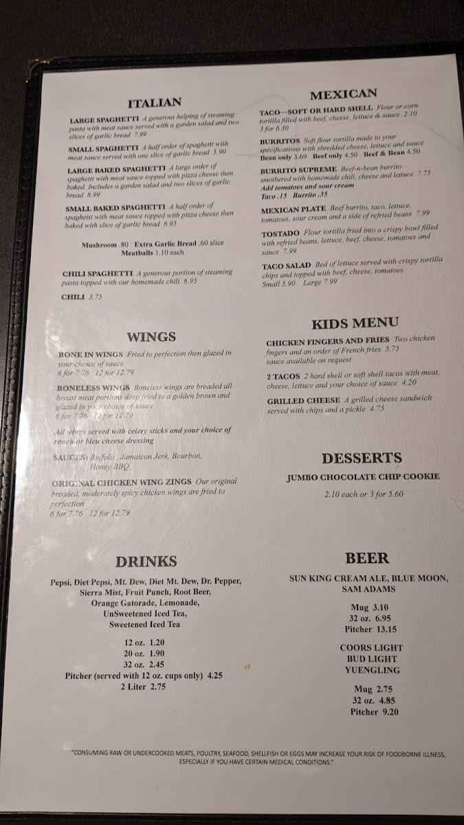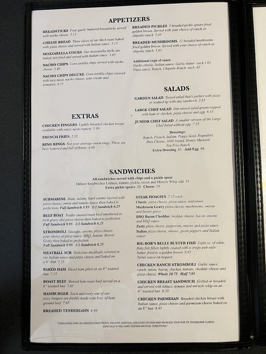 - Extra Treats: Beer-battered King Rings ($3.79), Chicken Fingers ($4.75), French Fries ($1.95)